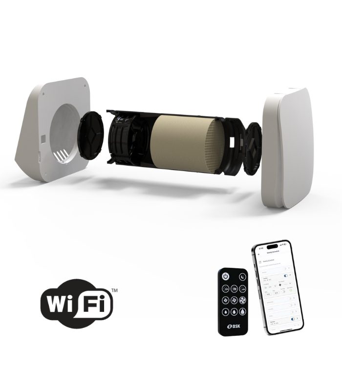 BSK Zephyr Mini - tai kompaktiškas sieninis mini rekuperatorius mažoms erdvėms, kuris nuolat keičia orą patalpoje ir kartu išsaugo didžiąją dalį šilumos. Jis ypač praverčia ten, kur nėra centrinės vėdinimo sistemos, bet patalpos sandarios, o drėgmė ir kvapai linkę užsilaikyti.