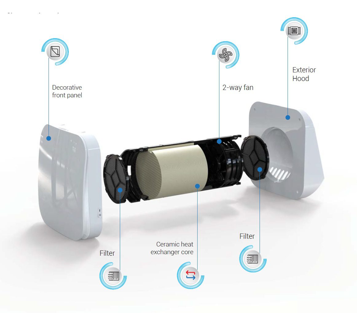 Viduje esantis keraminis šilumokaitis pirmiausia įkaista nuo šalinamo oro, o vėliau tą sukauptą šilumą perduoda atgal įeinančiam orui. Taip užtikrinamas nuolatinis vėdinimas su didele šilumos grąža (iki 90 %) ir mažesniais šilumos nuostoliais, palyginti su paprastu ventiliatoriumi ar vėdinimu per langą.
