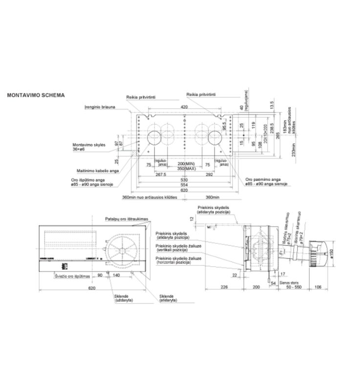 - Filtrų sistema: Atskiri tiekiamam ir šalinamam orui.